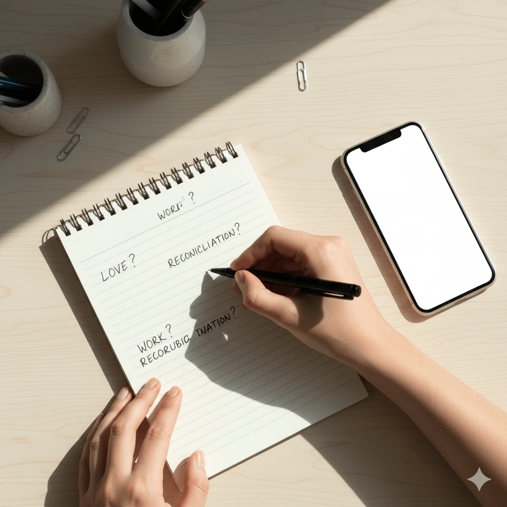 | 聞きたいこと | 優先順位をつけて3つまで | 「①彼の今の気持ち ②関係を戻すためにできること ③動くなら良いタイミング」 |