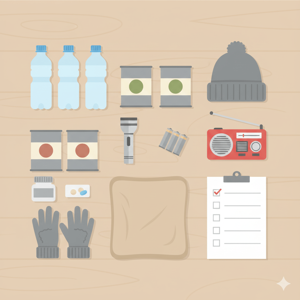 まずは、自宅にあるものを少し見直してみます。今回のように、冬の夜間に大きな地震や津波が起きるケースでは、寒さ対策がとても重要です。気象情報サイトや内閣府の資料でも、毛布や防寒着、カイロなどの準備が強く呼びかけられています。