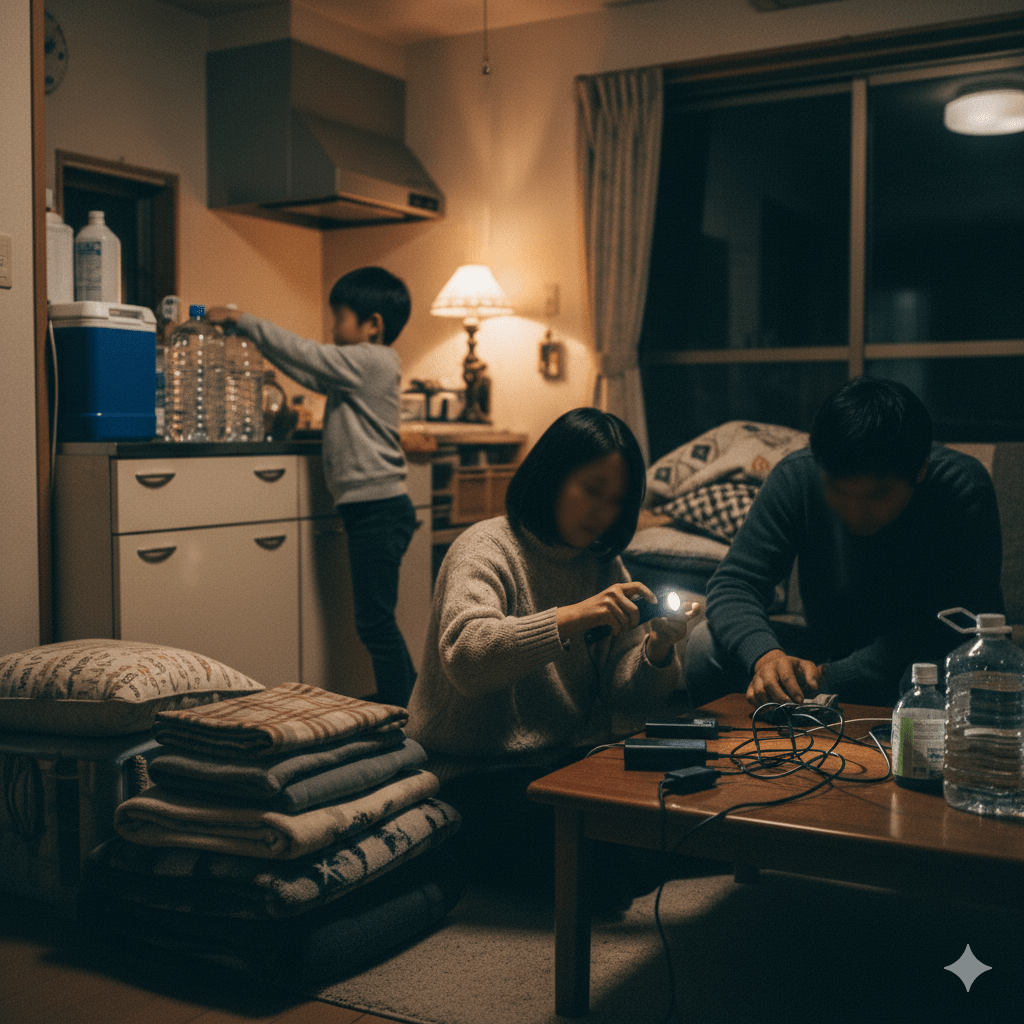 この記事では、家族の安全と生活を守るために必要な対策を、**優先順位(まず水、次に熱、最後に移動)**で整理し、いつ何をやるかまで落とし込みます。
