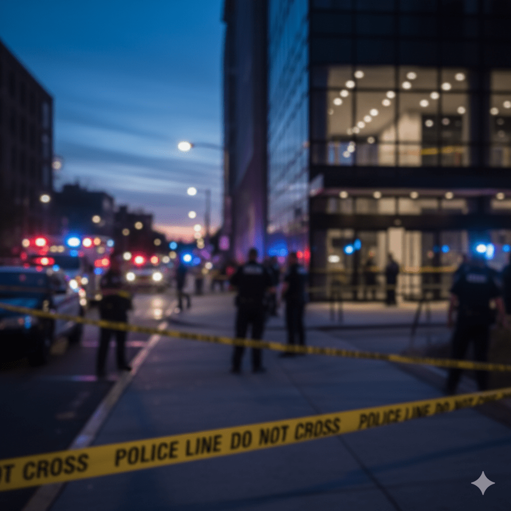 警察の発表では、「女性と男性が刃物で刺され、容疑者は現場から徒歩で逃走。凶器はその場に残されていない」とのことです。詳細な階や通路名は明かされていませんが、劇場ロビー、エレベーター前、または通路の可能性があります。