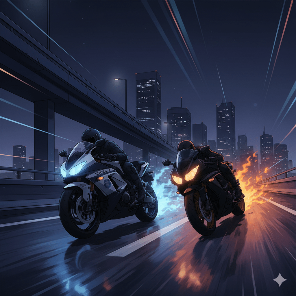 | 舞台 | 横浜・みなとみらい周辺/バイクの祭典が導入 | 高 | “高速道路”を想起させる舞台設定が濃い |